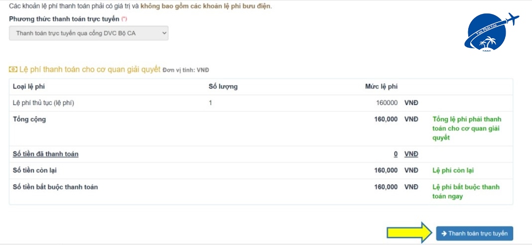Sau khi điền xong mẫu đơn, bạn sẽ nộp hồ sơ và thanh toán lệ phí. Các bước này có thể thực hiện hoàn toàn online qua hệ thống ngân hàng hoặc ví điện tử.